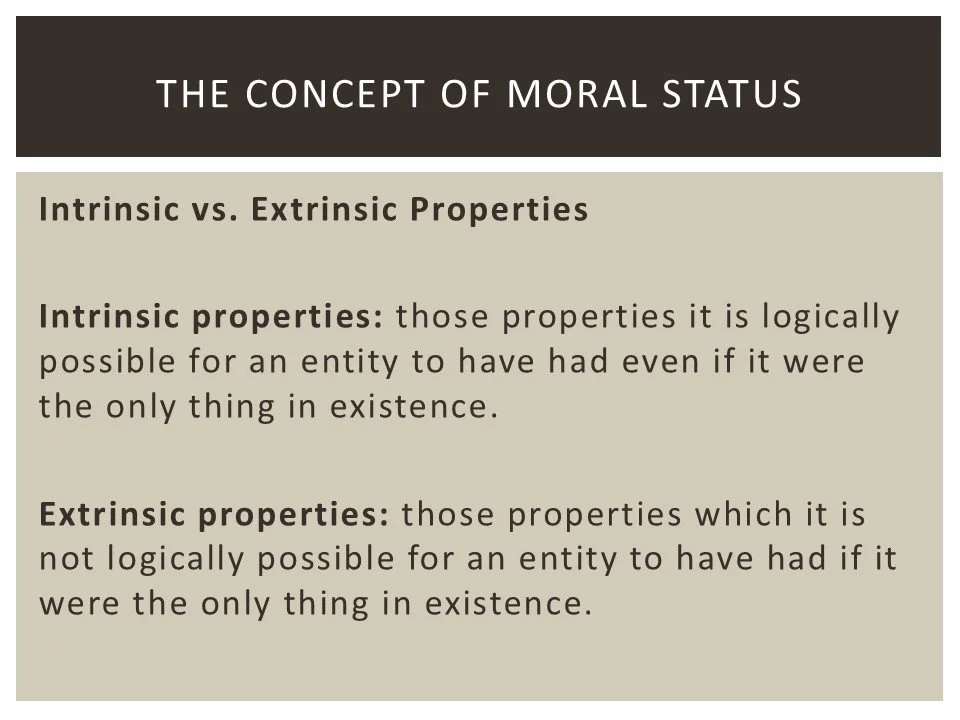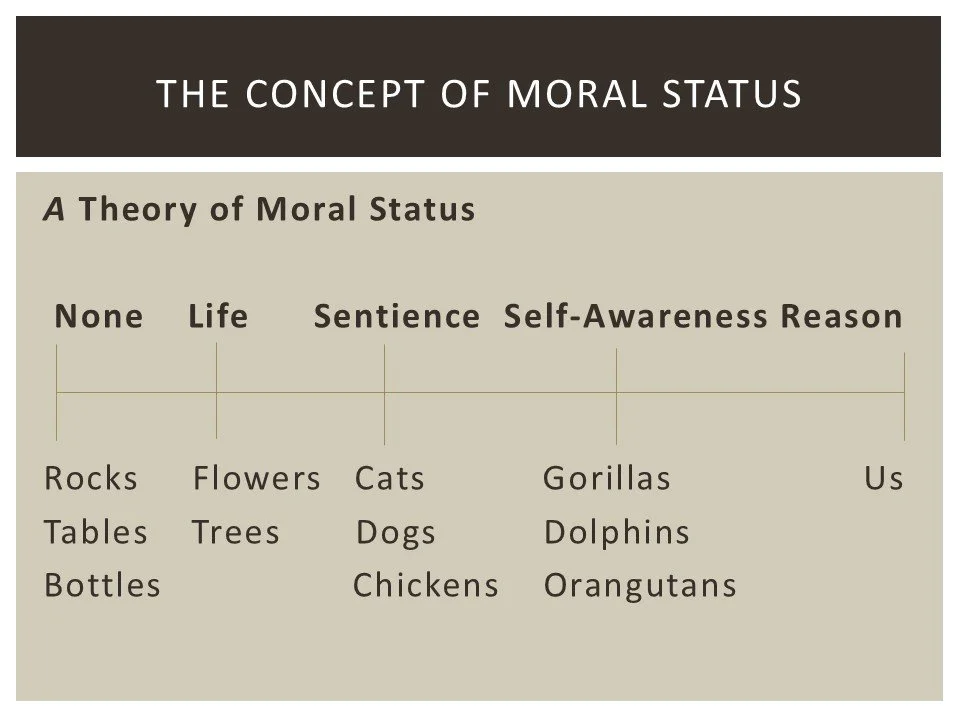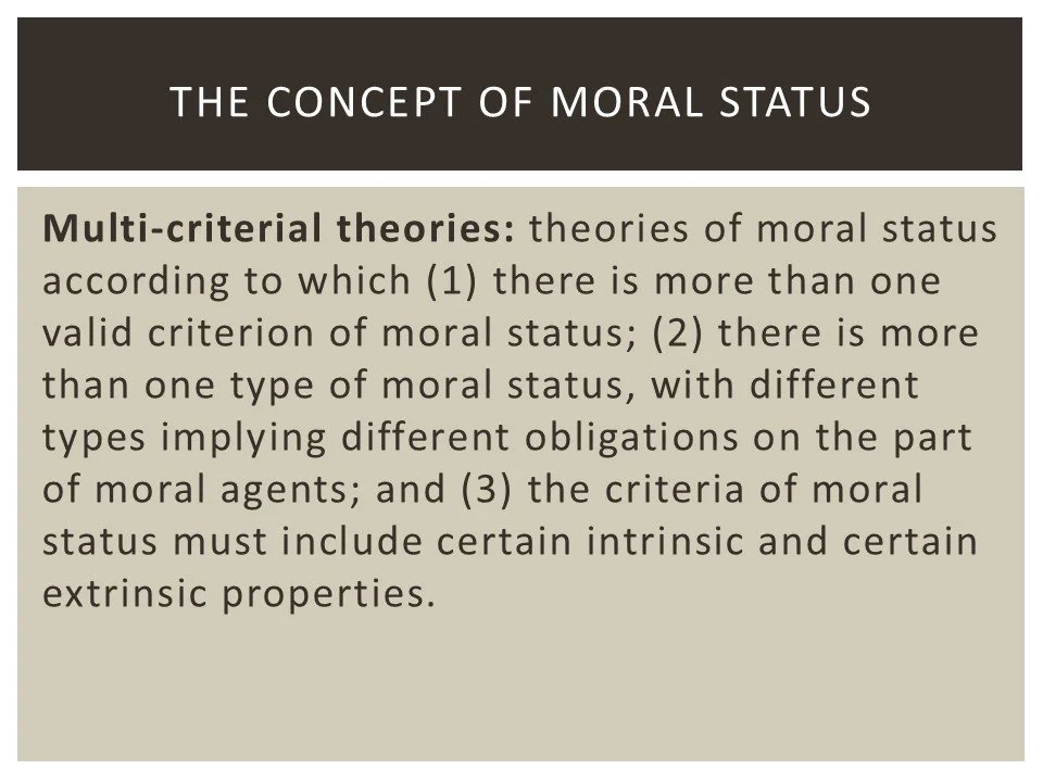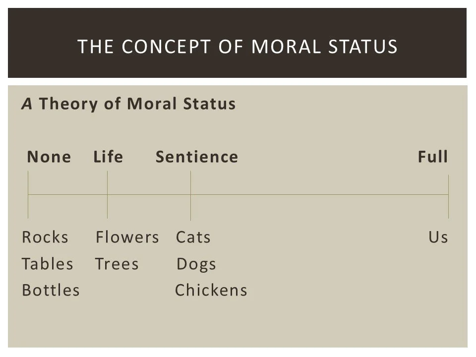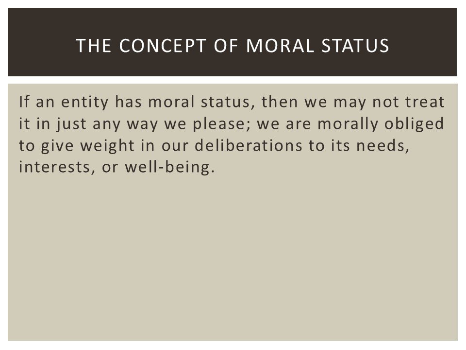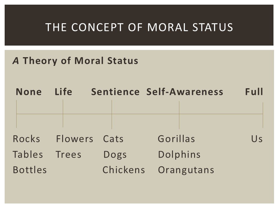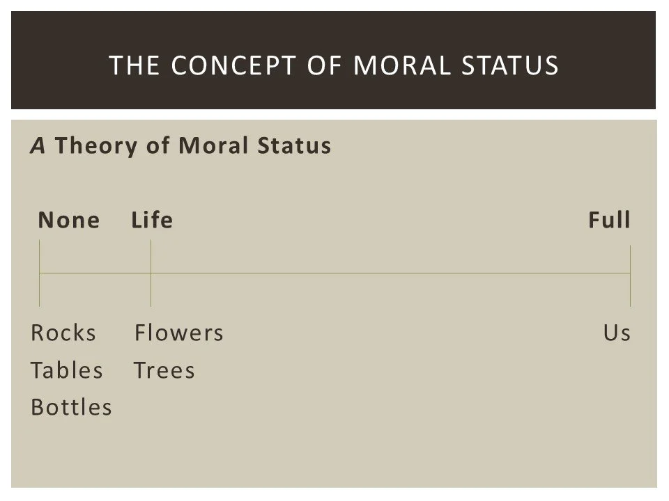 The following are excerpted from the set of PowerPoint slides on the concept of moral status. They are representative of the substance and style of all of the PowerPoint slides that are screen-shared and discussed during the course. Discussions of the course’s PowerPoint slides include presenting arguments for positions on bioethical issues, analyzing the concepts presented therein, explaining the importance of said concepts, and more. Throughout these discussions, Professor Lovering encourages students to participate by sharing their questions, observations, insights, confusions, anecdotes, and anything else (that is topic-relevant) that comes to mind.